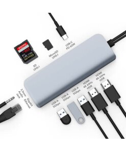 תכונות: תחנת עגינה 12 חיבורים וחיבור Type-C בצבע כסוף HyperDrive | HD392-SILVER | Viper 10-in-2 USB Type-C Hub
