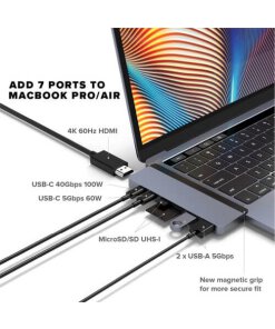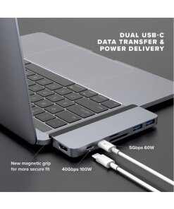 תכונות: תחנת עגינה 7 חיבורים וחיבור Type-C בצבע אפור HyperDrive | HD28C-GRAY | 7-in-2 Port | MacBook Pro MacBook Air