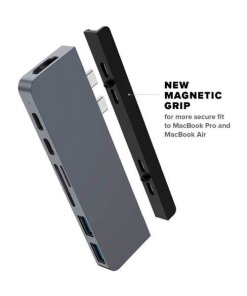 תחנת עגינה 7 חיבורים וחיבור Type-C בצבע אפור HyperDrive | HD28C-GRAY | 7-in-2 Port | MacBook Pro MacBook Air