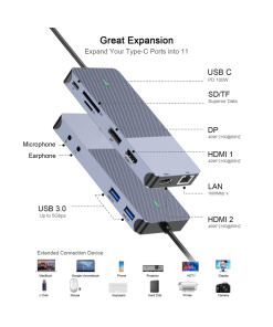 תאימות אוניברסלית כמעט לכל חיבור TYPE C – באמצעות צ’יפ DISPLAYLINK שמאפשר זיהוי של מספר מסכים גם ביציאות TYPE C שאינן תומכות MST ואף ביציאות שאינן תומכות DP ALT MODE כלל, לשם הצגת מסך מורחב (EXENDED).