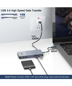 תחנת עגינה TYPE-C למגוון חיבורים כולל 3 יציאות מסך תומך MAC, WINDOWS, ANDROID בצבע אפור QGeeM | D6906P