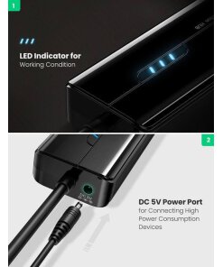 תכונות: תחנת עגינה יוגרין UGREEN | 20265 | 3xUSB3.0 | 1xGigabit Ethernet Hub